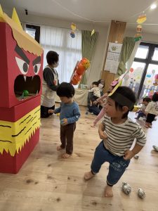 みんなでたくさん練習した『おにはそと!』で鬼さんを保育園から追い出そう!!!