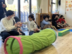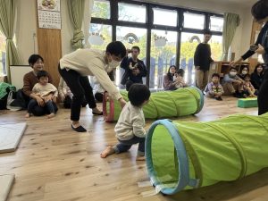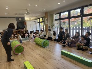 りす組、うさぎ組はサーキット遊びを親子で楽しみました。