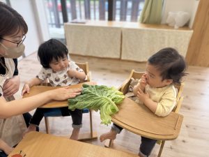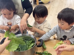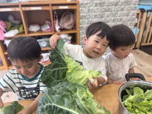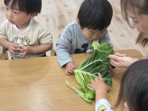 食育の一環として、きゃべつにふれる体験をしました✨