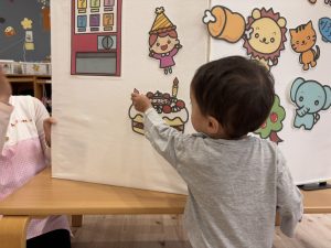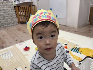 お友だちのみんなにお祝いの歌を歌ってもらい、アンパンマンのお誕生カードをもらうととっても喜んでくれました✨