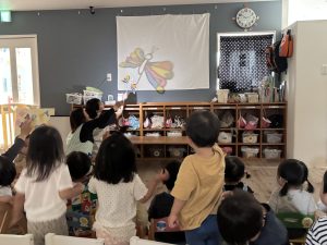 最後にちょうちょが出てくると、立ち上がって「バイバーイ!!」と、手を振る子どもたち✨