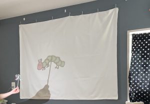 先生からの出し物は、はらぺこあおむしの影絵シアター♪