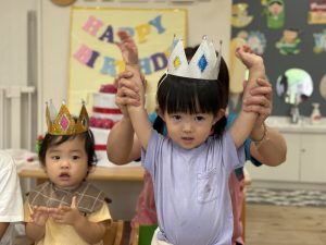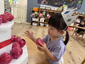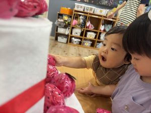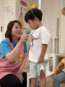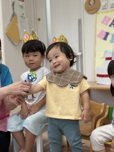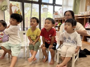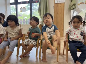 みんなの前でお名前を言ったり、お返事をしたり好きな色をちょっぴり照れながらも答えてくれていました。